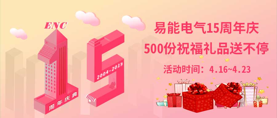 4月16日是易能電氣15周歲的生日。感謝一直以來 信賴 并 支持 易能電氣的客戶、用戶朋友們及合作伙伴!值此十五周年之際,易能電氣感恩有您,與您同樂,推出特別活動: